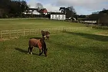 Further along the lane the hill can be accessed on foot via the long bricked paved driveway to Walton Hill Farm. From the same lane, about half way to the Hollybush, is Sling Common near the entrance to Calcot Hill Farm on Calcot Hill, which gives access to the summit of Walton Hill along a footpath which follows a ridge through private farm land, leading to Walton Hill Farm, where the path enters the National Trust land on the summit of Walton Hill.[1]