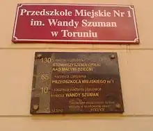 15. See image of plaque for Przedszkola Miejskiego Nr 1 imienia Wandy Szuman w Toruniu