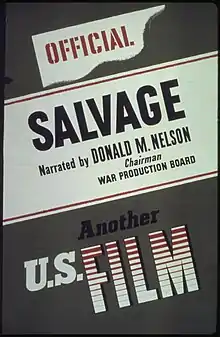Poster for the short film Salvage (1942), produced by the War Activities Committee of the Motion Pictures Industry and the War Production Board