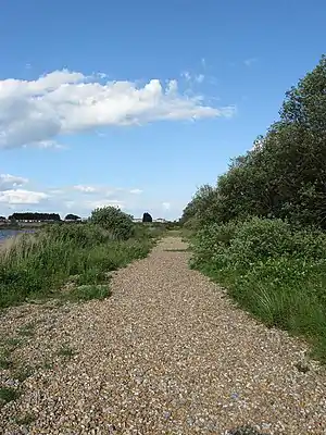 The War Department halt was an informal railway station on the Romney, Hythe and Dymchurch Railway in Kent, England. Over the 15 years that the station was open, its location is believed to have moved several times. Details are scarce as this was a secret military installation, but the end of the War Department branch line moved as building work moved onto new stages. When the installation closed in 1945 the railway company took over the line for freight shipment of ballast. Again, the end point of the line changed several times as the exact location of extraction of ballast changed, until closure of the branch in 1951. The locations of the halt are now under water owing to subsequent commercial extractions and flooding of the ballast pits.