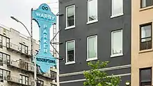 Vintage-style Warby Parker sign at a retail store on 82nd and Lexington Ave. in NYC