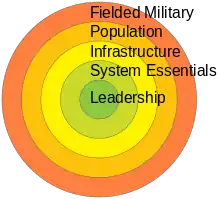 Warden's Five Rings represent a theory of military strategic attack, based on five levels of system attributes. They are named in honor of Col. John A. Warden III, a former United States Air Force officer and theorist of air power.