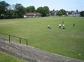 The ground is entered from the main park and is encircled by trees. The current pavilion is an extension of an existing building, which still holds the players changing rooms.[4] The buildings near the ground were used during the Second World War by Civil Defence personnel.[13] A raised viewing area runs along the eastern side of the ground and along the western side is a digital scoreboard. The ground could accommodate crowds of 4,000–5,000 and once accommodated a crowd of 6,000 for a benefit match for Tom Clark in 1961.[4] The cricket ground has also played host to field hockey matches, with the Bedfordshire Eagles playing there.[4] The lower cricket ground has never held county cricket matches and is the homeground of Luton Luctonian Cricket Club.