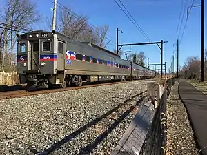 The Warminster Line is a continuation of the Reading Company's suburban services over the Warminster Branch. The line was built between 1872 and 1874 and electrified as far as Hatboro in 1931.[2] Passenger service beyond Hatboro ended in 1952. The Reading extended electrification and suburban service to Warminster on July 29, 1974.[2][3]
