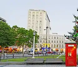 In the 1960s, the pediment and the parapets were removed from Warner's Hotel.[8] The gap left by the demolished Savoy developed into a beer garden, and it became a popular place.[14] One regular patron was Green Party co-leader Rod Donald, and after his funeral in the adjacent ChristChurch Cathedral on 10 November 2005, his wake was held in the beer garden.[15]