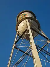 The Warner Bros. Water Tower is a historic water tower located at the Warner Bros. Studios in Burbank, California. Built in 1927, it stands 133 feet (41 meters) tall.[1] The tank, which had a capacity of 100,000 U.S. gallons (380,000 L), is no longer used to hold water.[2] It is decorated with the WB shield on either side and serves as a company icon.