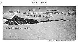 ![]() Warpasgiljo Glacier as seen towards the South from an aerial view photograph on p30 of Proceedings, American Philosophical Society (vol. 89, 1945) | |