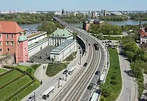 Looking east towards Praga from the St. Anne's Church onto the Śląsko-Dąbrowski Bridge of the route