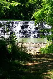 Settlers were attracted to the area by its numerous streams, used to power gristmills, sandstones and clays for use in construction, lime-sweetened soil, and chert for road construction.[18]
