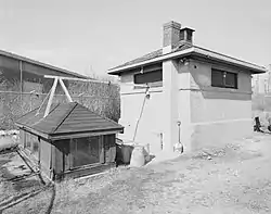 The Washington Park Sewage Pumping Station is an historic wastewater pumping facility in Providence, Rhode Island. Its principal visible component is a concrete block structure, finished in stucco and topped by a hip roof, which is about 16 by 16 feet (4.9 m × 4.9 m). This building stands atop a large cast-in-place concrete well, in which pumps and gate valves are housed. The facility was built in 1911 to pump raw sewage from the low-lying Washington Park area to the Field's Point wastewater treatment facility, which lies about 1,000 feet (300 m) to the north.[2] The pump station is located well back from the street, behind a low brick distribution facility. It was added to the National Register of Historic Places in 1989.