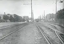Streetcar service on Commonwealth Avenue between Brighton Avenue and Chestnut Hill Avenue began on May 26, 1900.[2][3] From October 27, 1926, to January 23, 1953, a passing siding was in place just east of Washington Street. It was occasionally used to short turn trains.[3]