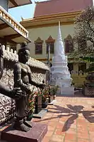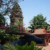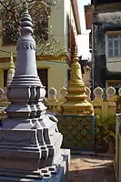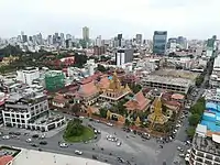 Wat Ounalom (Khmer: វត្តឧណ្ណាលោម, UNGEGN: Vôtt Ŭnnaloŭm, ALA-LC: Vatt Uṇṇālom, IPA: [ʋɔət ʔunnaːloːm]; also Wat Unnalom and several other spellings) is a wat located on Sisowath Quay in Phnom Penh, Cambodia, near the Royal Palace of Cambodia.[1] As the seat of Cambodia's Mohanikay Order, it is the most important wat of Phnom Penh, and the center of Cambodian Buddhism. It was established in 1443 and consists of 44 structures.[2] It was damaged during the Khmer Rouge period but has since been restored.[2] The main complex houses a stupa that contains what is believed to be an eyebrow hair of The Buddha and an inscription in Pali.[2]