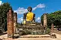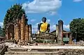Wat Phiat Wat is located in Muang Khoun, the former capital of Muang Phuan in the 14th century. What Phia Wat is said to be constructed in 1322 by Chao Lan Kham Khong, in order to house the first Buddhist statue in Xiangkhouang, which was brought over from Burma. In 1375, invading Chinese forces destroyed the complex and cut off the arm of the Buddha statue, but the Wat was later rebuild. In 1953, Wat Phia Wat was again destroyed during the First Indochina War, but rebuild in 1954.[1] Finally, the Wat was bombed by the US airforce during the Second Indochina War. Wat Phia Wat collapsed, but the Buddha statue still survives, although suffering significant damage. A new temple was created after the war.[2]