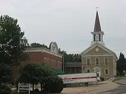 It includes Shullsburg's downtown, both now and during early lead-mining. Properties include the 1847/78/84 City Hotel,[2] the 1855/1886 Brewster House Hotel,[3] the 1867 Greek Revival Methodist Episcopal Church,[4] 1882 Copeland Opera House,[5] the 1884 Italianate Merchants Union Bank,[6] the 1884 Gothic Revival/eclectic Williams Estate Building,[7] the 1903 Gerlach Saloon,[8] and the 1920 20th Century Commercial-styled Gem Garage.[9][10]