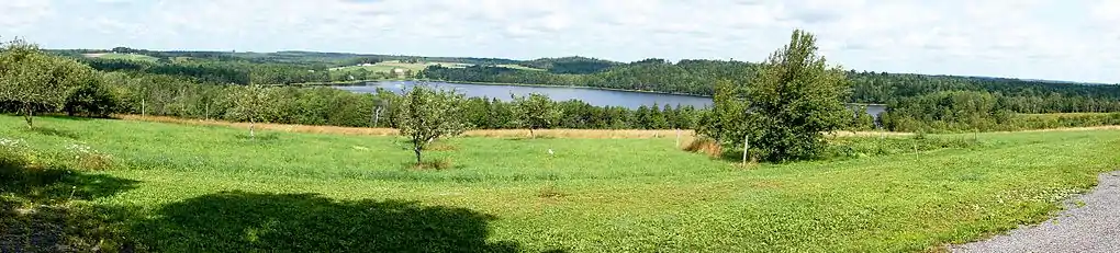 The dominant physical features of the community are cleared drumlins, wetlands known as "swamps" and three lakes: Frederick Lake, Matthew Lake (earlier Mack Lake, likely after George Wile's grandson Daniel "Mack" Wile, later named Matthew possibly after Matthew Carver, a landholder near the western edge of the lake), and Long Lake. The drumlins provided the best cultivatable land to the original settlers who grew fodder and commercial crops. One large wetland is known as the Turner Bog. Though the land was too wet for farming and roads, it was granted to the Nova Scotia Central Railway (see more at Halifax and Southwestern Railway) to provide wood for infrastructure and possible line expansion (Cameron, 1999).