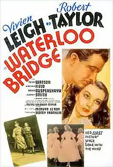 Waterloo Bridge is a 1940 American drama film and the remake of the 1931 film also called Waterloo Bridge, adapted from the 1930 play Waterloo Bridge. In an extended flashback narration, it recounts the story of a dancer and an army captain who meet by chance on Waterloo Bridge in London. The film was made by Metro-Goldwyn-Mayer, directed by Mervyn LeRoy and produced by Sidney Franklin and Mervyn LeRoy. The screenplay is by S. N. Behrman, Hans Rameau and George Froeschel, based on the Broadway drama by Robert E. Sherwood. The music is by Herbert Stothart and cinematography by Joseph Ruttenberg.
