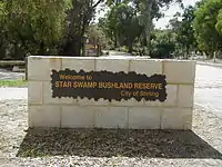 Star Swamp Bushland Reserve is a bushland reserve occupying about half of the land area of the suburbs of Watermans Bay and North Beach. The precise origin of the name is unknown, but the earliest known use of the name was on a lease application by J.H.Okely of Wanneroo in 1868. It also has a long history as a Noongar camping area, with fresh water and abundant bush tucker and seafood. Some signs of the people are still there. In 1987, the State Government set aside 96 hectares as an A-class reserve,[5] and funding from the Bicentennial Commemorative Program and assistance from local organisations facilitated the establishment of the Star Swamp Heritage Trail within the reserve.[2]