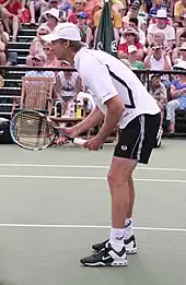 His serve was his strongest weapon by far, and had been referred to as the "best in the world" by several of his fellow players, including Jim Courier,[1] Andre Agassi,[2] Thomas Johansson,[3] and Ivo Karlović.[4] He consistently had one of the highest ace counts on the ATP Tour and favours a serve-and-volley style of play.