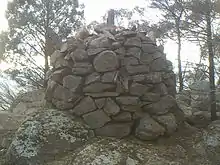 The Eualdrie walking trail leads from Holy Camp and is advertised as a 2.6-kilometre (1.6 mi) 2.5 hour return trip passing through Peregrine Lookout which takes 1.5 hours return. This was tested as 30 minutes to Perrigrine lookout, 23 minutes more to the Cairn at the summit and 40 minutes return. Peregrine Lookout is south of the carpark and from there the path turns back on itself as it proceeds upwards so that the cairn at the summit is a little north of the carpark. The path appears to continue past the cairn at Euradrie Trig (height 750 m) and can be followed down to Ben Halls Cave.[6]