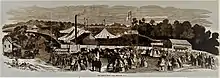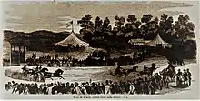 What is now the oval-shaped Rev. Ronald B. Christian Recreation Complex, south of the lake, was originally a half-mile racing oval built around or before the 1850s for equestrian competition at the Waverly Fair.[28] This "Waverly Racing Oval" was home to cycling and horse races during the 19th and first half of the 20th century.[29] President Ulysses S. Grant attended the horse races at the site in 1872.[30] The racing oval is now a half-mile walking loop and, inside the oval, modern amenities such as a football field,[31] a modern 400-meter athletic track,[32] and two softball fields[33] are now located as part of the Rev. Ronald B. Christian Recreation Complex.[34]