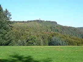 The Weißenberg in the Palatine Forest is a hill in the municipality of Merzalben (Südwestpfalz county, Rhineland-Pfalz). Its height is variously give as 610 m above sea level (NHN)[2] or 607 m above NHN.[3] The higher value has been officially recommended since 2011.[2] That makes the Weißenberg the highest point in the west of the mountain range, ahead of the Eschkopf and Mosisberg (each 609 m above NHN). As part of the Palatine Forest-North Vosges Biosphere Reserve it is protected by special conservation measures.