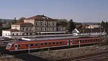 The Bavarian Eastern Railway Company (Bavarian Ostbahn) gained the concession to build the line was on 3 January 1862.[2] Construction began later that year and was completed on 1 December 1863.[3] From Schwandorf station to Irrenlohe station its single track ran parallel with the also single-track Regensburg–Schwandorf–AmbergNuremberg line of the Eastern Railway.[4] It ended in its own station in Bayreuth south of the former Brandenburger Thor (Brandenburg Gate, the location of the station of the state railway, the current Bayreuth Hauptbahnhof), which had a roundhouse, a goods shed, a carriage shed and a residential block for railway officials. To reduce costs, however, passenger traffic was handled from the beginning at the platform of the Bayreuth–Neuenmarkt-Wirsberg railway.[5]