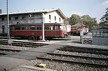 Class VT 98 railbus in front of the former Ostbahn carriage shed in Bayreuth, 1986
