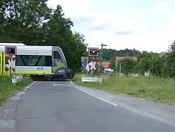 Diesel multiple unit on Wunaustraße level crossing in Bayreuth