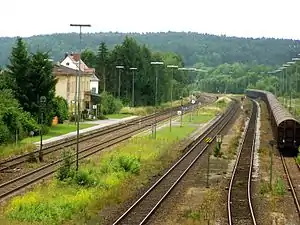 The Weiden–Bayreuth railway is a major railway in the German state of Bavaria. It connects Weiden in der Oberpfalz, Kirchenlaibach and Bayreuth.