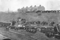 The leading bogie of the locomotive derailed on hitting the trolley, but the driving wheels did not; the engine continued onwards until it hit a diamond crossover at the north end of the station when it became completely derailed, detached from its tender and ended up facing backwards. The second passenger coach was completely wrecked. Both enginemen and five passengers were killed.