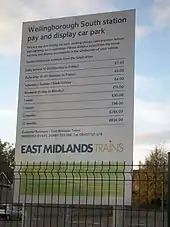The new 'South' car park has been built as a replacement for the 'North' car park which is still open. The replacement was built because of the Wellingborough East (Stanton Cross) development, as a new road bridge would start where the 'North' car park is situated and then go over the railway.[15]
