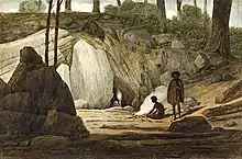 - ↑ Earle, Augustus. (1826), Mosman's Cave, Wellington Valley, New South Wales, No. 1, retrieved 4 June 2019