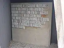 The first series of 11 concrete plaques were designed by internationally renowned typographer Catherine Griffiths,[7][8] with each plaque having an individual sponsor. The Writers Walk was opened during New Zealand Post Writers and Readers Week, part of the International Festival of the Arts, on 11 March 2002.[9][10] Stage Two of the Walk was launched on 8 May 2004.[11] Catherine Griffiths was awarded the Terry Stringer Award at the BEST Design Awards in 2002 for her work on the sculptures.[12]