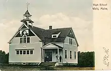Wells High School traces its origins back to 1873, when the state of Maine enacted the Free High School Act. The law gave towns the ability to establish public high schools which would receive 50% of their funding from the state. Classes were held at the existing one-room schools located throughout the town.[3]