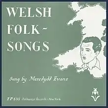 Welsh Folk-Songs is the first album by Welsh folk music singer and collector Meredydd Evans, consisting of a cappella renditions of traditional Welsh-language folk songs. The album was recorded in New Hope, Pennsylvania after Moses Asch, founder of Folkways Records, contacted Evans, who was then studying at Princeton University. Upon release in 1954, Welsh Folk-Songs was acclaimed by The New York Times, who named it among the year's best records.