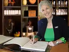 Wendy Wilkins (born March 1, 1949) was provost and executive vice president at New Mexico State University until November 2012.[1] She took the post in mid-July 2010 after resigning from the University of North Texas at the end of business day, July 1, 2010.[2] Prior to beginning her service as the University of North Texas Provost and Vice President for Academic Affairs in 2007,[3] Wilkins has served as Dean of the College of Arts and Letters at Michigan State University[4] and as Associate Dean for Academic Personnel in the College of Liberal Arts and Sciences at Arizona State University.[5] Her work in academic administration began with service as Associate Chair, and then Chair, of the Department of English at ASU.