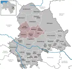 | Groß Oesingen | 2,029 | 57.44 | 35/km2 | Groß Oesingen, Klein Oesingen, Mahrenholz (Groß Oesingen), Schmarloh, Texas (Groß Oesingen), Zahrenholz |