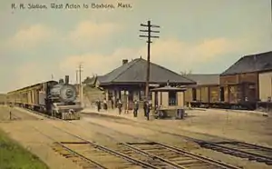 West Acton station was a flag stop by 1858.[1] It served the village of West Acton, and later Boxborough when its stop was closed in the 1930s. The station building, located on the east side of the tracks, was demolished in the mid 1960s as ridership declined.