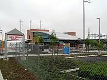 West Haven station is a commuter rail station on the Metro-North Railroad's New Haven Line, located in West Haven, Connecticut. The station was built on Sawmill Road between Hood Terrace and Railroad Avenue, in the Elm Street-Wagner Place neighborhood. West Haven has 660 parking spaces in on-site lots (with the possibility of 300–400 more in a parking garage in a refurbished industrial building north of the station if warranted by future demand) as well as bicycle facilities. The station is accessible. West Haven has full service on the New Haven Line, as well as from the handful of Shore Line East trains which run past New Haven to Stamford.[2]