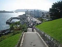 The area features elegant buildings including the Grand Parade and the remnants of the old public steam baths beside West Hoe Basin which were briefly a yacht club and now a bar and restaurant.