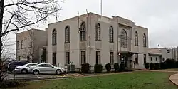 The former West Memphis City Hall is a historic municipal building at 100 Court Street in West Memphis, Arkansas. It is a brick building, whose original 1938 construction consisted of two two-story sections joined by a single-story connector. The front portion of the building housed city offices, while the rear portion housed the fire station and the jail. It was built in 1938 with funding from the Public Works Administration, a Depression-era jobs program. The building was extended to include a courtroom annex in 1944–45, and an enlarged jail annex was added in 1960–61. It no longer houses town offices (which are at 205 South Redding Street); it now houses a police dispatch center and the municipal court.[2]