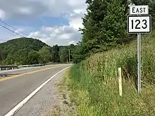 West Virginia Route 123 is an eastwest state highway located in the Bluefield, West Virginia area. The western terminus of the route is at the Virginia state line northwest of Bluefield, where WV 123 continues west as secondary State Route 643. The eastern terminus is at U.S. Route 19 and U.S. Route 460 northeast of Bluefield.