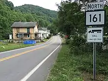 West Virginia Route 161 is a north–south state highway located entirely within McDowell County, West Virginia. The southern terminus of the route is at West Virginia Route 16 in Bishop less than 900 feet (270 m) from the Virginia state line. The northern terminus is at U.S. Route 52 in Elkhorn.