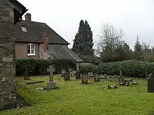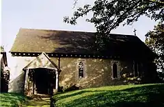 Adjacent to Manor Farm is St Nicholas Church, small church dated to the late 12th century, which forms one of eleven churches in the Northanger benefice.[1] It fell into ruin and lost its roof before it was restored in the late Victorian period in 1888.[23] It is a single-cell building, with 2 small lancets on the north side, and contains windows dated to the 15th and 16th century.[23] The two doorways date to the 13th century, and the timber-framed porch on the south side to the 15th century.[23] The interior is described as "plain, with a piscina in the east wall and 2 in the nave, an octagonal font, and 3 wall monuments of the late 18th century."[23] The church became a listed building on 31 July 1963.[23]