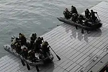 PACIFIC OCEAN (25 Feb. 2011) Soldiers from the Japan Ground Self-Defense Force, Western Army Infantry Regiment launch rigid-hull inflatable boats from the well deck of the amphibious assault ship USS Makin Island (LHD 8). Marines and Japanese soldiers are participating in Exercise Iron Fist, a bilateral training exercise to enhance their amphibious knowledge. (U.S. Navy photo by Aviation Structural Mechanic Airman Justin Joyner/Released)