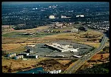 The mall opened in March 1968, with three anchor stores and 58 smaller shops. It was built as a joint venture between The May Department Stores Company and Strouse, Greenberg & Co., based on the design of John Graham, Jr. and Ward and Hall.[5][6][1] The original anchors were Hecht's, Garfinckel's, and Sears. Smaller shops included a Bond Stores outlet. The Mall was also where longtime fugitive William Bradford Bishop bought a ball peen hammer and gas can to allegedly kill and burn his entire family on March 1, 1976. The old mall logo was an owl-shaped "M".[7] A mid-1970s expansion included a US$4.5 million, 155,000-square-foot (14,400 m2) Woodward & Lothrop store and 60,000 square feet (5,600 m2) of additional retail space for 40 stores.[8][9]