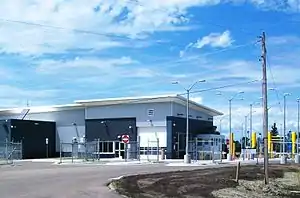 The US first built a permanent inspection station at the border in 1937. That brick veneer roadside border station was replaced by a new building in the 1974,[4] which in turn was replaced by a large modern border station in 2011.[5]