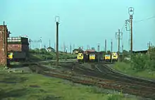 In the 1950s and 60's Jinty's 4F's, 8F's and 9F's were most common. In steam days Garratts could be seen pounding up the gradient in front of a long line of coal wagons. When diesels were introduced, classes, 08, 25, 47 and 45 were seen. Into the 1970s British Rail Classes 08, 20, 47 and latterly 56 were the main stay. Classes 25, 45, and 58 also visited the shed.