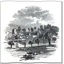 At the start of the English Civil War (in 1642) soldiers who were based at Weston Hall attacked Royalists who were based on the south side of the river.[14] Some Parliamentary soldiers were reputedly buried in Weston Churchyard in 1644 after a battle at King's Mill when Sir John Gell took 200 royalist prisoners.[15]