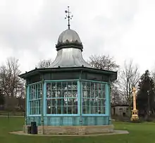 In 1895 the South West gates were erected on Western Bank close to the newly constructed Mappin Art Gallery. This became the park's main entrance and was built primarily so affluent visitors could drive their carriages right up to the gallery's door. The bandstand was added around 1900. It was designed by the Sheffield architects Flockton and Gibbs and constructed at a foundry in Glasgow. It was one of a pair, the other being placed in Hillsborough Park, but this has since been demolished. The bandstand was in use until the mid-1970s and many well-known bands have played there, including the Black Dyke Band and the Coldstream Guards Band; it has also staged several rock concerts there. The restored bandstand is now an approved Civil Wedding venue.[5]